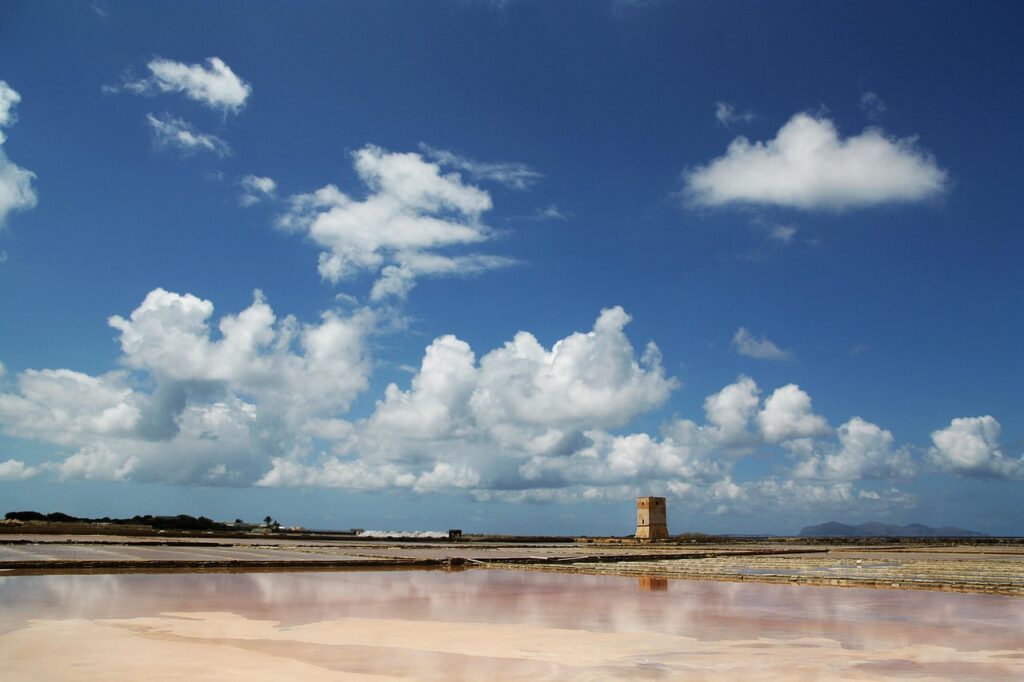 Le saline di Torre Guaceto si estendono su un’area di circa 1.200 ettari, creando un habitat ideale per diverse specie di uccelli migratori e flora tipica della macchia mediterranea. Questa oasi protetta è caratterizzata da paesaggi mozzafiato, dove le tonalità del cielo si fondono con il riflesso dell’acqua salmastra. Durante il tramonto, il cielo si trasforma in una tavolozza di colori caldi, che spazia dall’arancione al rosso, dal rosa al viola, rendendo il quadro naturale ancora più affascinante.